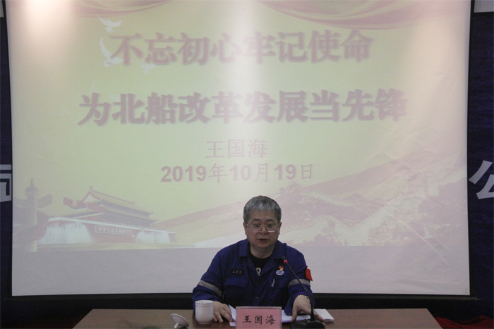 王國(guó)海圍繞“不忘初心、牢記使命”主題教育有關(guān)要求、工作進(jìn)展及需掌握的基本點(diǎn);從1921年建黨至今,波瀾壯闊的發(fā)展史回顧;結(jié)合武船集團(tuán)、北船重工及青武當(dāng)前發(fā)展的狀況,內(nèi)外部形勢(shì)分析及優(yōu)劣勢(shì)分析;北船重工青島武船改革整合概況和進(jìn)程;北船重工青島武船在制產(chǎn)品生產(chǎn)現(xiàn)狀分析;在主題教育、公司深化改革中,黨員如何發(fā)揮好先鋒模范作用等六個(gè)方面講授黨課。