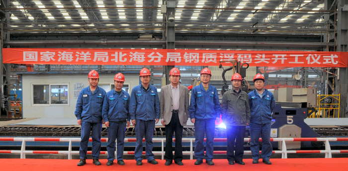 5月13日,公司為國家海洋局北海分局承建的鋼質(zhì)浮碼頭在造船聯(lián)合廠房舉行開工儀式,國家海洋局北海分局副局長孫利佳和我公司副總經(jīng)理谷克超及游艇廠廠長陳興國等有關(guān)生產(chǎn)單位領(lǐng)導(dǎo)共同參加了開工儀式。