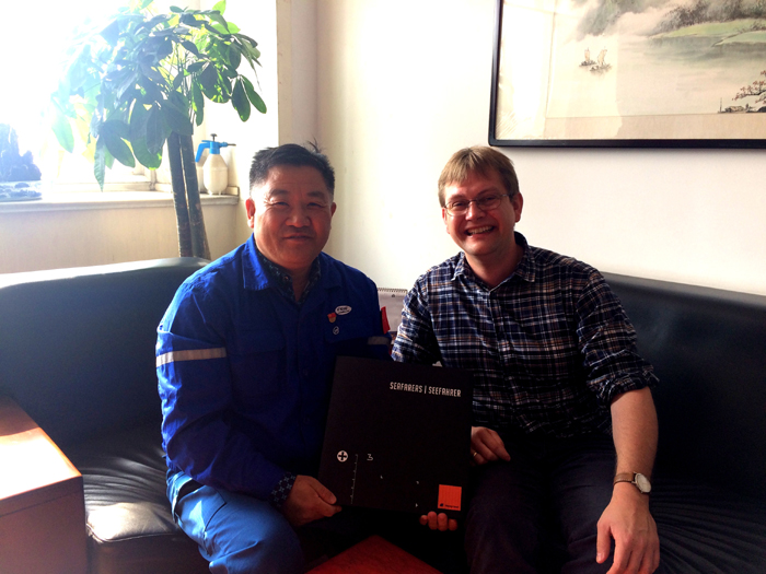 Jannes Hangen 先生轉(zhuǎn)達了船東公司高層對我公司的良好祝愿,贈送了代表雙方合作歷史的紀念冊,并表達了深化合作的愿望。劉玉東副總經(jīng)理代表公司接受了船東公司贈送的紀念冊,感謝船東公司高層的良好祝愿,感謝船東公司的信任。劉副總表示,北船重工非常重視與HAPAG LIOYD 公司的合作,非常珍惜每一次的合作機會,公司修船正在不斷提升管理水平、技術工藝水平和服務水平,秉持超越船東期待的理念,絕不辜負船東的期望和支持。