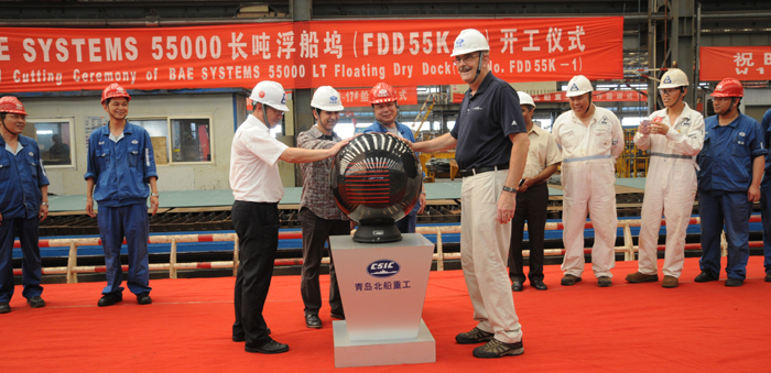 7月29日,公司為美國BAE公司建造的55000長噸舉力浮船塢(FDD55K-1),在船體制作工程部聯(lián)合加工廠房舉行了現(xiàn)場開工儀式。