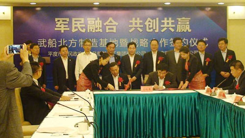 5月27日,平度市與武船集團(tuán)戰(zhàn)略合作協(xié)議簽約暨武船集團(tuán)北方制造基地揭牌儀式舉行。武船集團(tuán)董事長楊志鋼和平度市委書記張杰為武船集團(tuán)北方制造基地揭牌。武船集團(tuán)黨委委員、公司總經(jīng)理韓兵代表武船集團(tuán)和平度市人民政府領(lǐng)導(dǎo)簽訂戰(zhàn)略合作協(xié)議;韓兵和磐石集團(tuán)董事長李德平分別代表武船集團(tuán)與磐石集團(tuán)簽訂戰(zhàn)略合作框架協(xié)議。