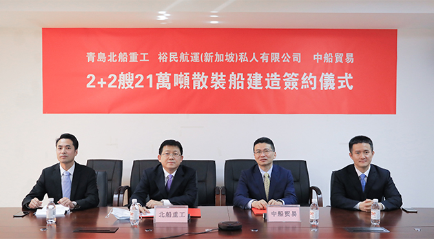 1月29日,中國(guó)船舶工業(yè)貿(mào)易有限公司、青島北船重工與裕民航運(yùn)股份有限公司在青島、臺(tái)北兩地,通過(guò)視頻形式舉行了2+2艘21萬(wàn)噸散貨船項(xiàng)目云簽約儀式。這是繼32.5萬(wàn)噸礦砂船項(xiàng)目后又一次重大戰(zhàn)略合作,充分體現(xiàn)了船東給予的認(rèn)可和支持!