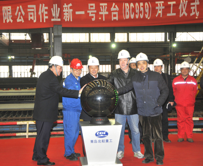 公司近兩年來在開拓海工市場上的重要項(xiàng)目?C?C為中石化勝利石油工程有限公司建造的“作業(yè)新一號(hào)平臺(tái)”于12月18日下午在公司船體聯(lián)合加工廠房舉行了開工儀式。公司總經(jīng)理助理于寶月主持開工儀式并下達(dá)開工令,公司副總經(jīng)理劉杰與船東、CCS船級(jí)社、設(shè)計(jì)單位代表等共同按啟切割機(jī)開機(jī)觸摸球,平臺(tái)正式開工建造。