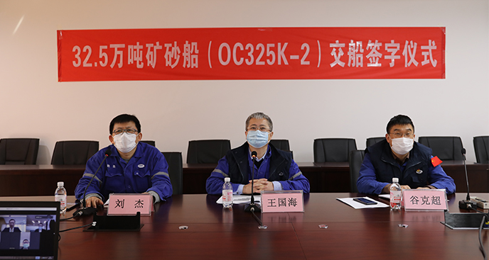 4月15日,公司為工銀金融租賃有限公司和招商局能源運輸股份有限公司建造的32.5萬噸礦砂船“ORE FUZHOU”順利交付,這是繼公司2月份剛剛交付首制32.5萬噸礦砂船“ORE YANTAI”輪之后,交付的同型姊妹船。該船在延續(xù)首制船電簽的基礎(chǔ)上,通過視頻會議形式舉辦交船簽字儀式,公司黨委書記、董事長王國海,工銀租賃航運金融事業(yè)部執(zhí)行總經(jīng)理郭芳萌、招商輪船副總經(jīng)理丁磊先后講話并就后續(xù)產(chǎn)品建造情況進行了座談交流。