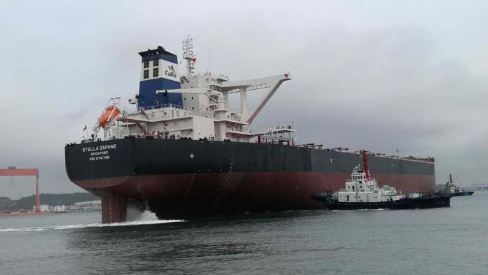 7月16日上午,公司為新加坡CARA?。樱龋桑校校桑危枪窘ㄔ斓?5萬噸礦砂船12號“STELLA DAPHNE”輪順利完工交付,并離廠首航。這是雙方合作交付的第四艘25萬噸礦砂船。