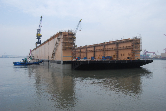 4月20日上午,公司為美國BAE公司建造的55000長噸舉力浮船塢(FDD55K-1),在順利完成船體建造工程后離開1號造船塢靠泊造船3號碼頭。該浮船塢由美國ABS船級社負(fù)責(zé)監(jiān)造,工藝標(biāo)準(zhǔn)要求嚴(yán),施工難度大,其工期直接影響到公司造修船生產(chǎn)資源結(jié)合平衡的總體計(jì)劃。為此,公司各相關(guān)部門高度重視,按照節(jié)點(diǎn)計(jì)劃落實(shí)細(xì)節(jié),確保各個(gè)生產(chǎn)節(jié)點(diǎn)按計(jì)劃完成。該浮船塢靠泊碼頭后,將進(jìn)行艙室涂裝、系統(tǒng)安裝調(diào)試等工作,計(jì)劃5月中旬進(jìn)塢完成船體噴漆等工程,7月份完成出海沉浮試驗(yàn),8月份交船。