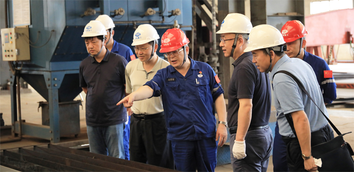 劉桂國(guó)一行先后參觀了聯(lián)合廠房、修船區(qū)、造船塢以及碼頭等區(qū)域,了解了公司生產(chǎn)能力及生產(chǎn)流程,并在會(huì)議室進(jìn)行了座談。