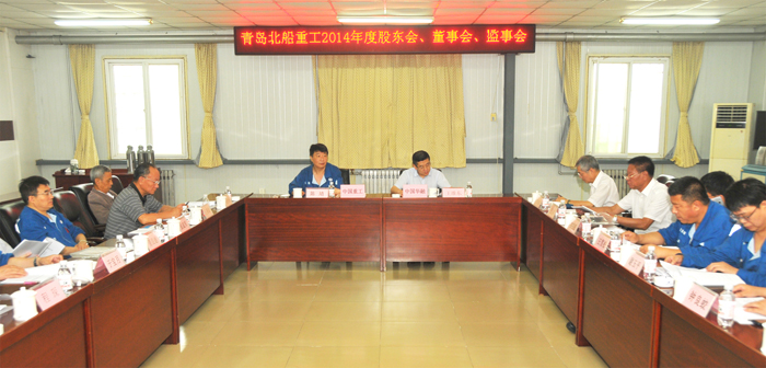 8月19日,青島北船重工2014年度股東會、第四屆董事會第二次會議、第四屆監(jiān)事會第二次會議在機關(guān)會議室舉行。股東會、董事會由公司董事長陳?街鞒鄭?監(jiān)事會由公司監(jiān)事會主席張成軍主持。中國重工股東代表、董事長陳?劍?中國華融股東代表、董事王維東,董事顏景亮、王國海、谷克超、干鳳琪、馬文軍、張云祥、王雪松,監(jiān)事會主席張成軍、監(jiān)事劉虎林、王西章、董良迪、于寶月、孫書猛等出席(或委托出席)會議,中國重工資本運營部程琛和公司副總會計師謝玉平、董事會秘書鐘良蛟、資產(chǎn)運營部副部長于緒濱列席會議。