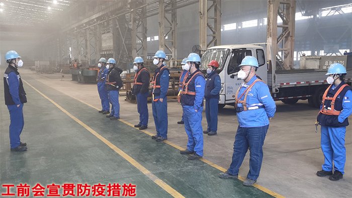 公司在春節(jié)前根據(jù)疫情信息,著手開(kāi)展疫情防控準(zhǔn)備工作,執(zhí)行廠區(qū)、公寓人員門(mén)卡管控,準(zhǔn)備防控應(yīng)急物資。1月26日,公司第一時(shí)間成立新型冠狀病毒感染的肺炎疫情聯(lián)防聯(lián)控領(lǐng)導(dǎo)小組和工作組,春節(jié)期間先后發(fā)布實(shí)施《關(guān)于成立新型冠狀病毒感染的肺炎疫情聯(lián)防聯(lián)控工作機(jī)構(gòu)的通知》、《關(guān)于印發(fā)〈青島北海船舶重工有限責(zé)任公司新冠肺炎疫情聯(lián)防聯(lián)控工作實(shí)施細(xì)則〉的通知》等,以及餐廳、廠區(qū)、公寓、門(mén)崗重要場(chǎng)所防范新型冠狀病毒肺炎的要求。