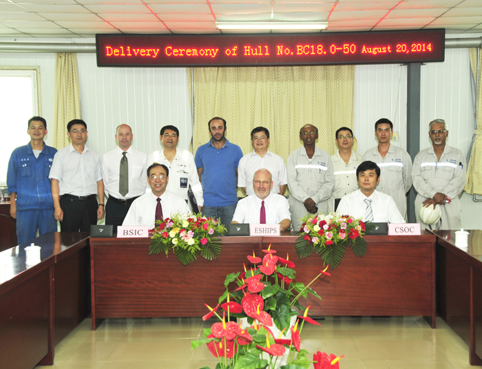 圖一:公司承接建造的真正意義上的首艘外輪?C?C18萬(wàn)噸散貨船(BC18.0?C50#),于8月20日在公司舉行了交船儀式。