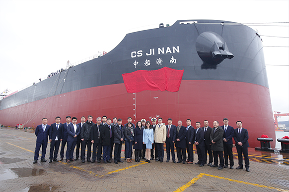 2月25日上午,公司建造的第40艘18萬噸散貨船“CS JI NAN”輪順利交付中船貿(mào)易所屬租賃公司。在公司碼頭現(xiàn)場舉行了交船暨命名儀式,三方代表簽署了交船議定書,周怡瓊女士作為新船教母為船舶命名并砍纜。
