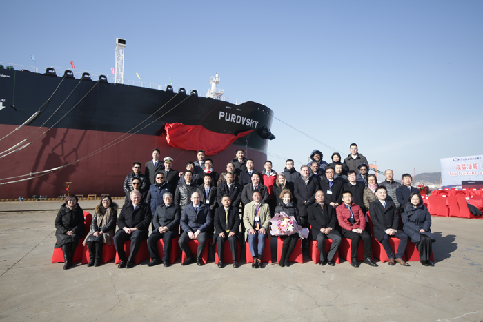 1月24日,武船集團北船重工、中國船舶重工國際貿(mào)易有限公司共同為黃金油輪有限公司建造的第二艘11.3萬噸成品油輪“PUROVSKY”號舉行命名暨交接儀式。
