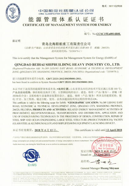 公司能源管理體系日前已順利通過CCS認(rèn)證公司審核,并獲準(zhǔn)能源管理體系認(rèn)證注冊(cè)。