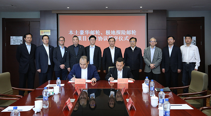 5月24日,武船集團與精英郵輪簽署了“本土豪華郵輪、極地探險郵輪項目合作協(xié)議”。武船集團黨委委員、北船重工總經(jīng)理韓兵與精英郵輪董事長張鵬代表雙方簽約,青島市李滄區(qū)委書記王希靜,武船集團黨委書記、董事長楊志鋼出席并見證了簽約儀式。
